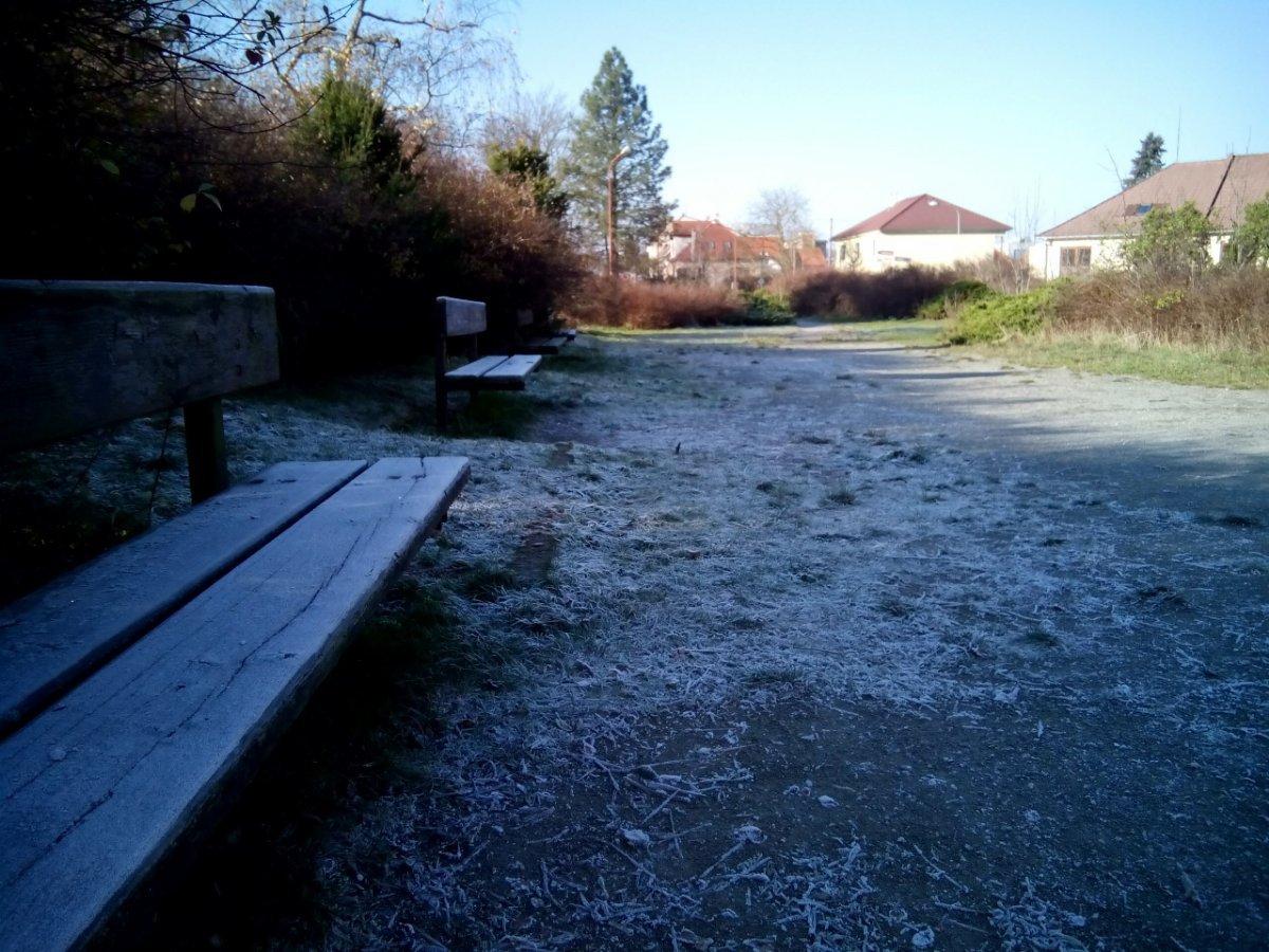 vysoká oblačnost a tvorba vlnové oblačnosti ( viz na snímku při JV obzoru ) , dohled 20 km , RV 55 procent , S až SV vítr 2 až 6 m/vt , tlak 1028,2 hPa ..