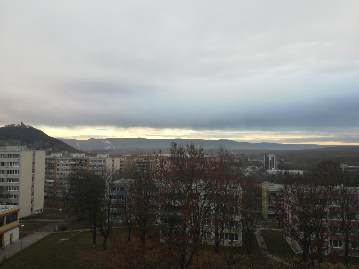 Zamračené a slabé sneženie.