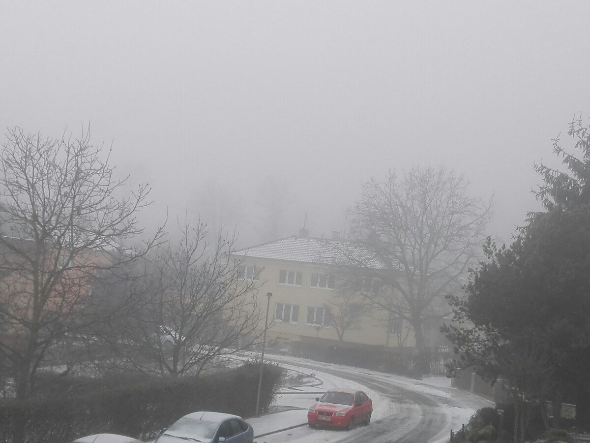 Sněží, oblačnost 100%, zákl.oblačnosti 1313,01m.n.m., tlak 1021,9hPa, dohlednost 1,5km, rel.vlhkost 75,6%, abs.vlhkost 2,90g/m3, JJV větřík 160° 1,9m/s(2 Bft), poc.teplota -7,34°C, wind chill -6,16°C, tepl.ros.bodu -7,02°C, tepl.mraků -9,41°C, HUMIDEX -6,77°C, délka dne ve Slavičíně = 8hod.32min.15vt.(35,57%dne), AQI(index kvality ovzduší) = 62/mírné znečištění/,včerejší průměrná teplota = -2,69°C.