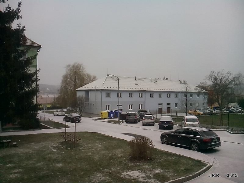 ráno min. -5.8°C, Nyní: zataženo, -4°C