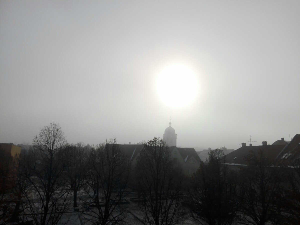 mlha stridajici se s modrou oblohou