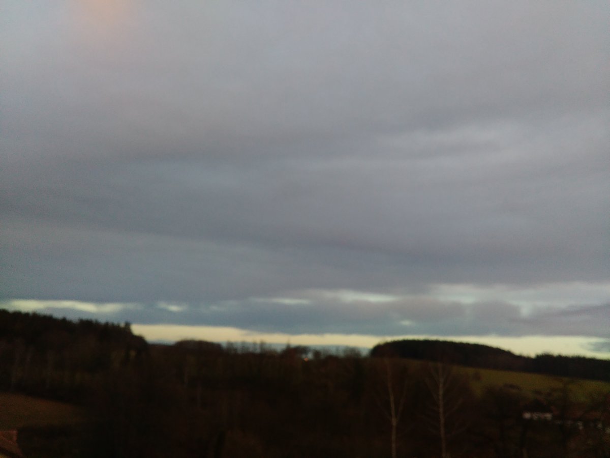 Dnes jsme měli skoro jarní počasí a taky docela proměnlivo od skoro jasna až po zataženo se vystřídalo téměř všechno ale pršelo jen v noci a ráno přes den už nepršelo teplota byla hodně vysoko na to že je 3.12 po poledni se dokonce dostala až na 10 stupňů pak začala slabě klesat ale ještě teď je docela teplo a je většinou bezvětří nebo fouká vánek na obloze teď převažuje většinou oblačno oblačnost přibívá od z a sníh už většinou žádný není ale ještě se někde najdou hromádky odhrnutého sněhu vlhkost 88%