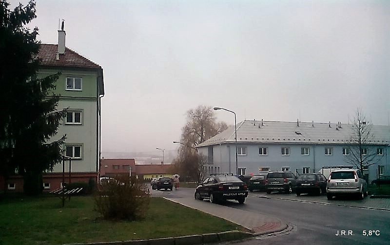 Je zataženo mlhavo a bezvětří. Od západu se ženou přehánky.