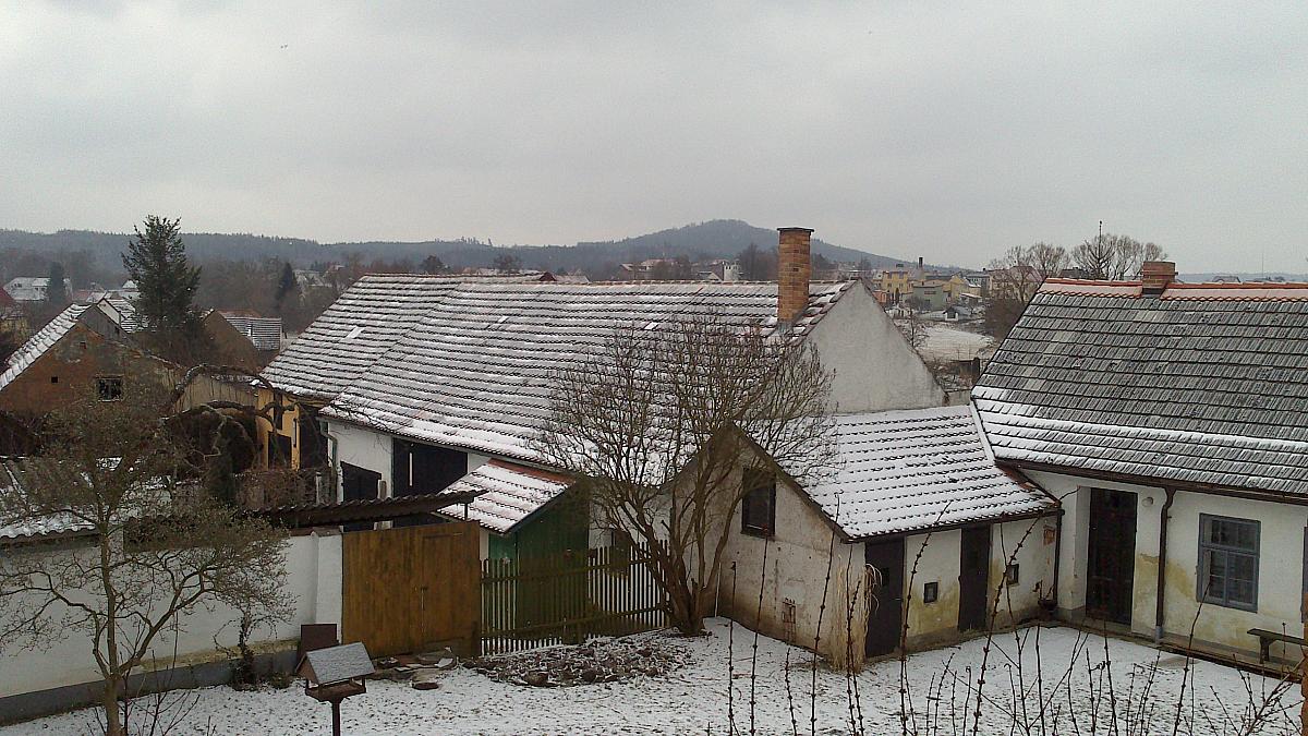 Oblačnost 5/8, sem tam padá sníh, zákl.mraků 899m, tlak 1011,3hPa, dohlednost 18km, vlhkost 58,8%, mírný J vítr 178° 4,3m/s(3 Bft).
