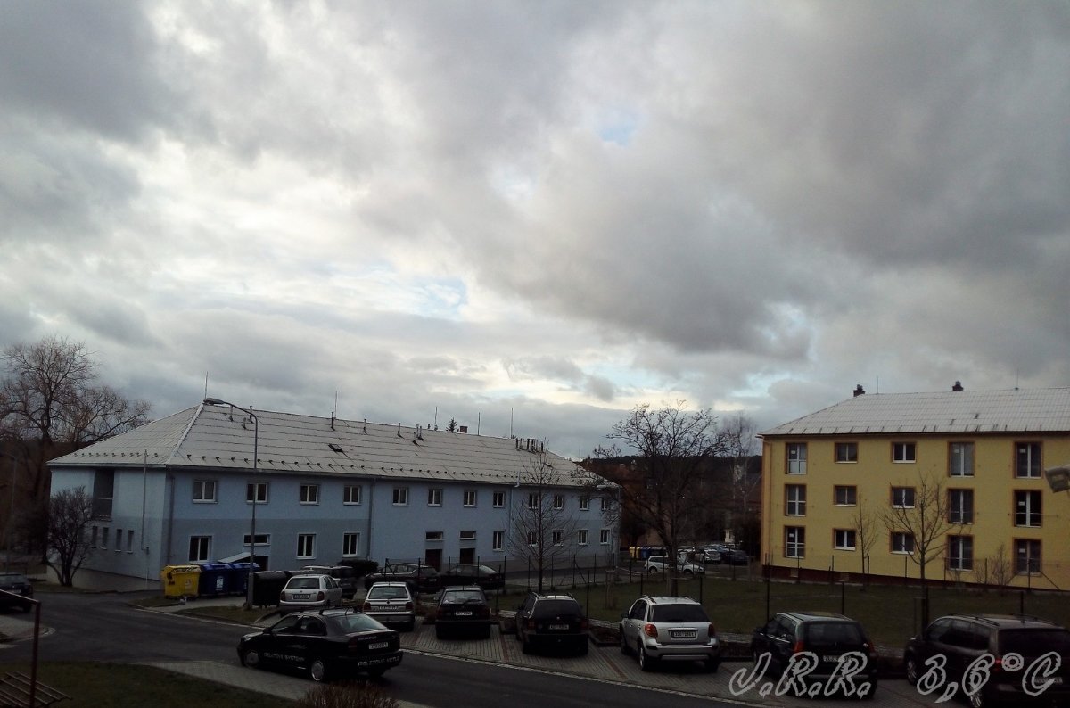 Oblačno. Vzdialená prehánka.