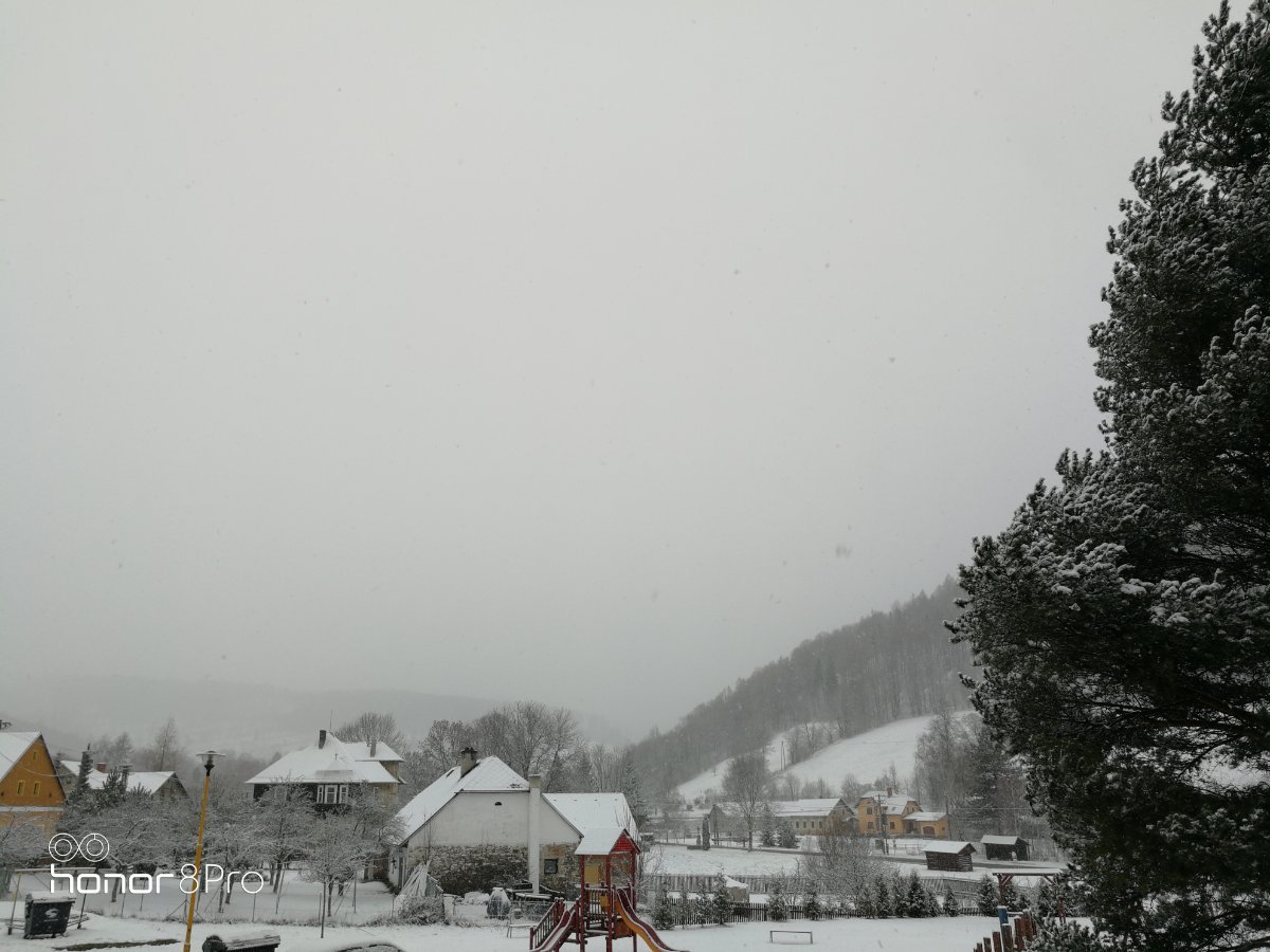 V noci zde nasněžilo kolem 7cm vlhkého sněhu .Stále drobně padá.