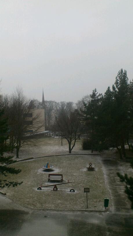 Zataženo, sněží, zákl.mraků 127m, tlak 1009,4hPa, dohlednost 800m, vlhkost 93,7%, J vánek 183° 1,4m/s(1 Bft).