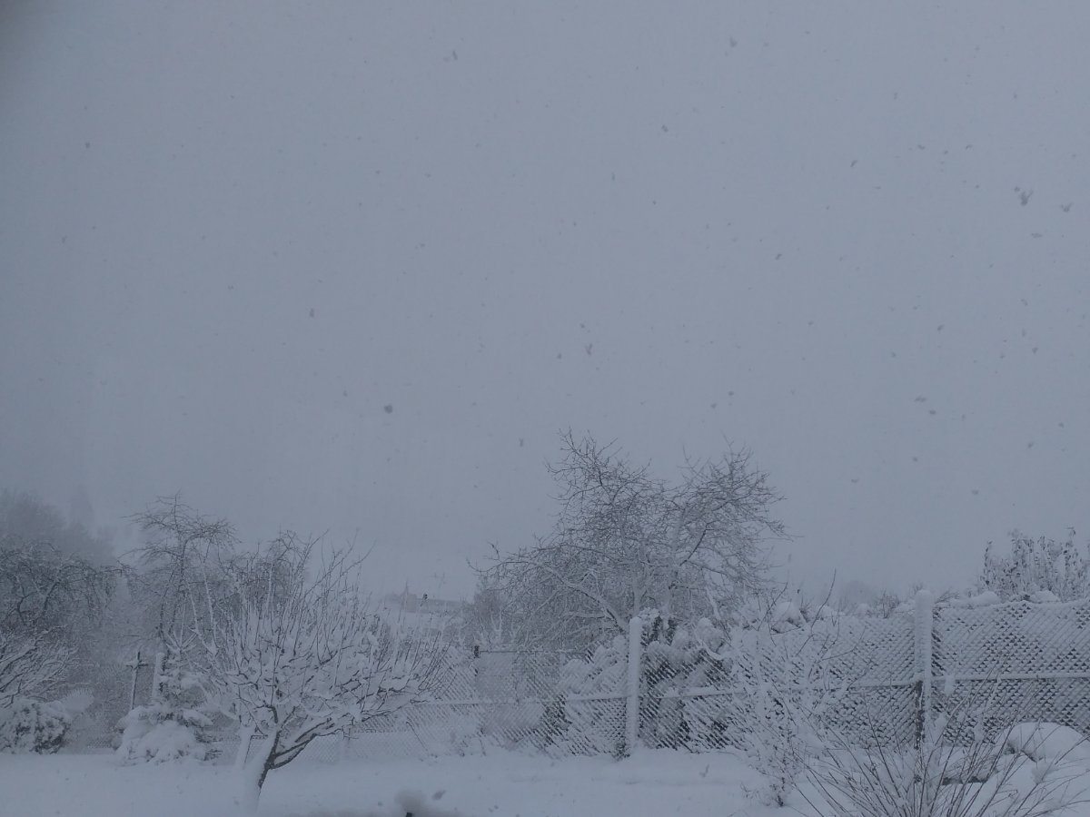 Oblačno, slabunke sneženie.