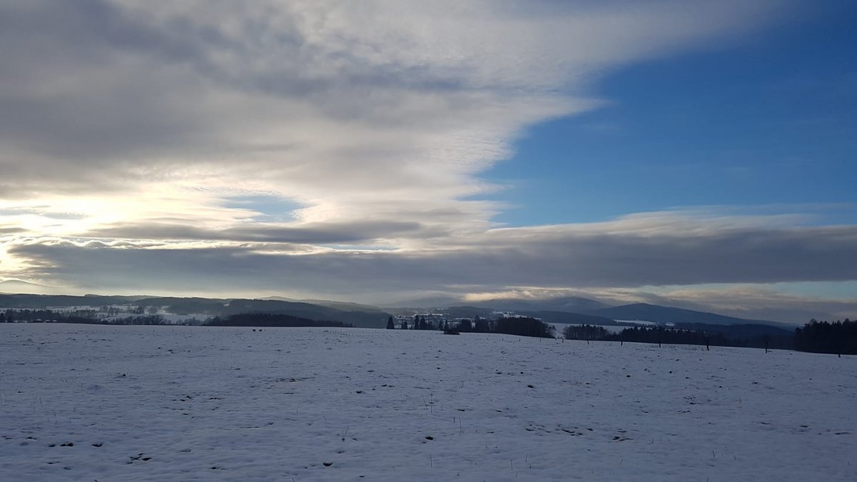 Obleva, slabý Z vítr, tlak 1030,5 hPa.