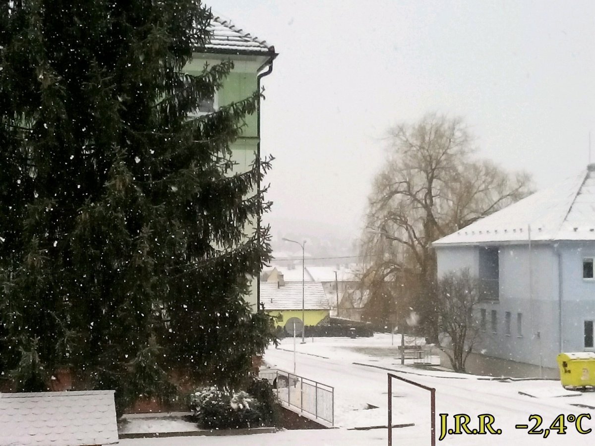 Celé dopoledne silné sněžení. Nyní se otepluje.
