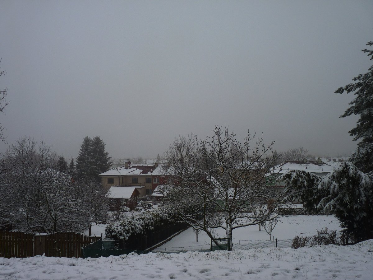 Sněží, ale sníh se na ulicích neudrží a taje.