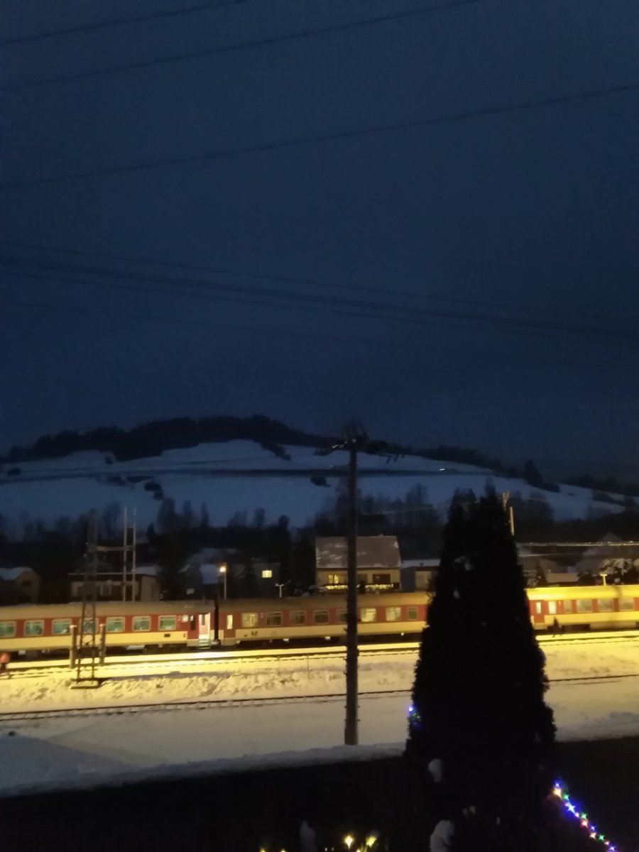 Je zataženo a padá zmrzlí déšť se sněhem. Je bezvětří.