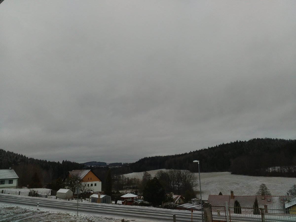 Slabounce sněží a vítr vane mírný.