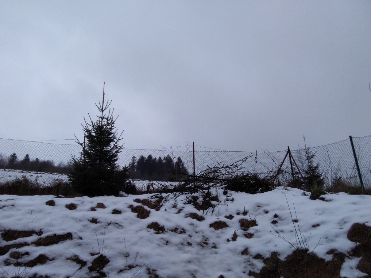 do rána min. 0°C a sněžení napadl poprašek který už roztál, Nyní: občas déšť se sněhem, slabý vítr, 2°C