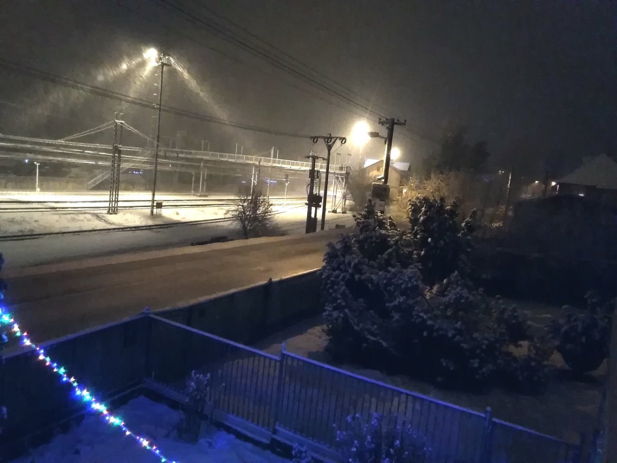 Zamračené a mierne sneženie.