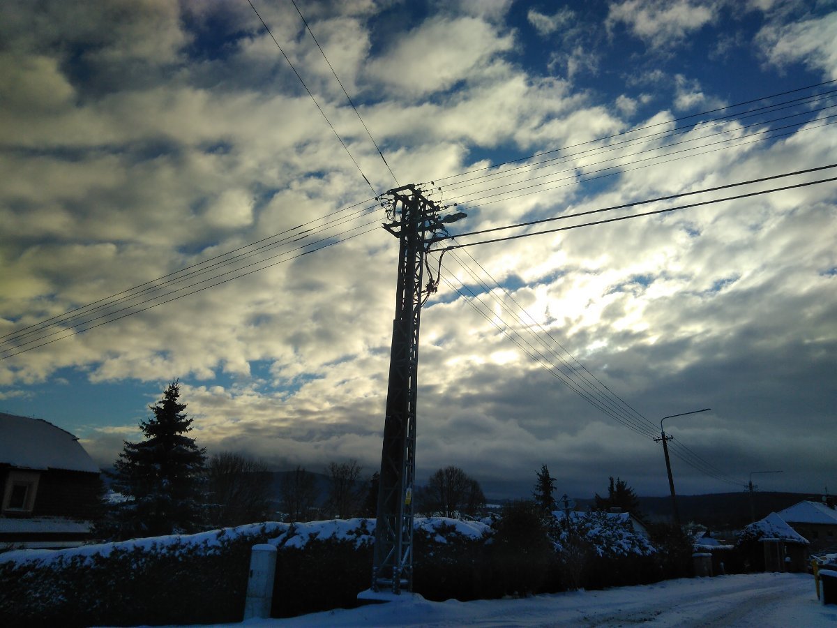 Krásný zimní den, po dopoledním sněžení leží 2cm sněhu a občas dokonce vysvitne slunce. Vane slabý až mírný severozápadní vítr, tlak: 1025 hPa.