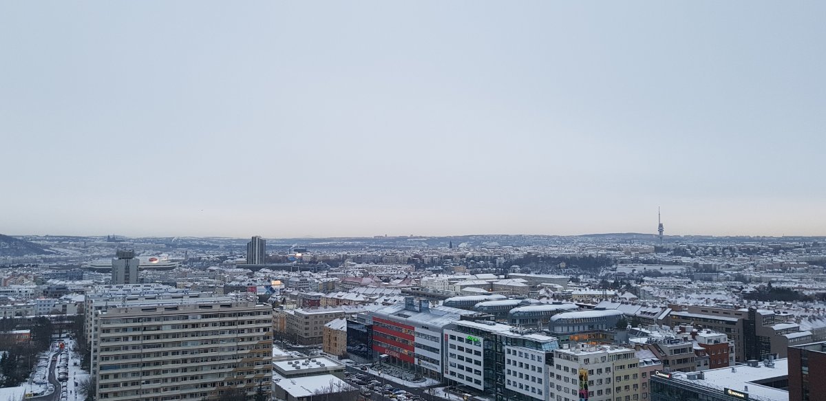 Oblačno až skoro zamračené, veľmi slabunke sneženie,už sneh trochu usadnul.
