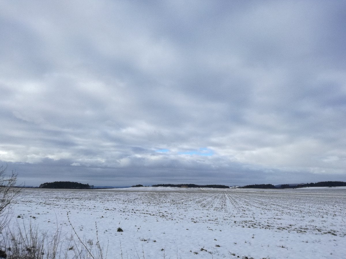 oblačno až skoro zataženo, slabý až mírný vítr, sníh nesouvisí do 4cm, -0.3°C