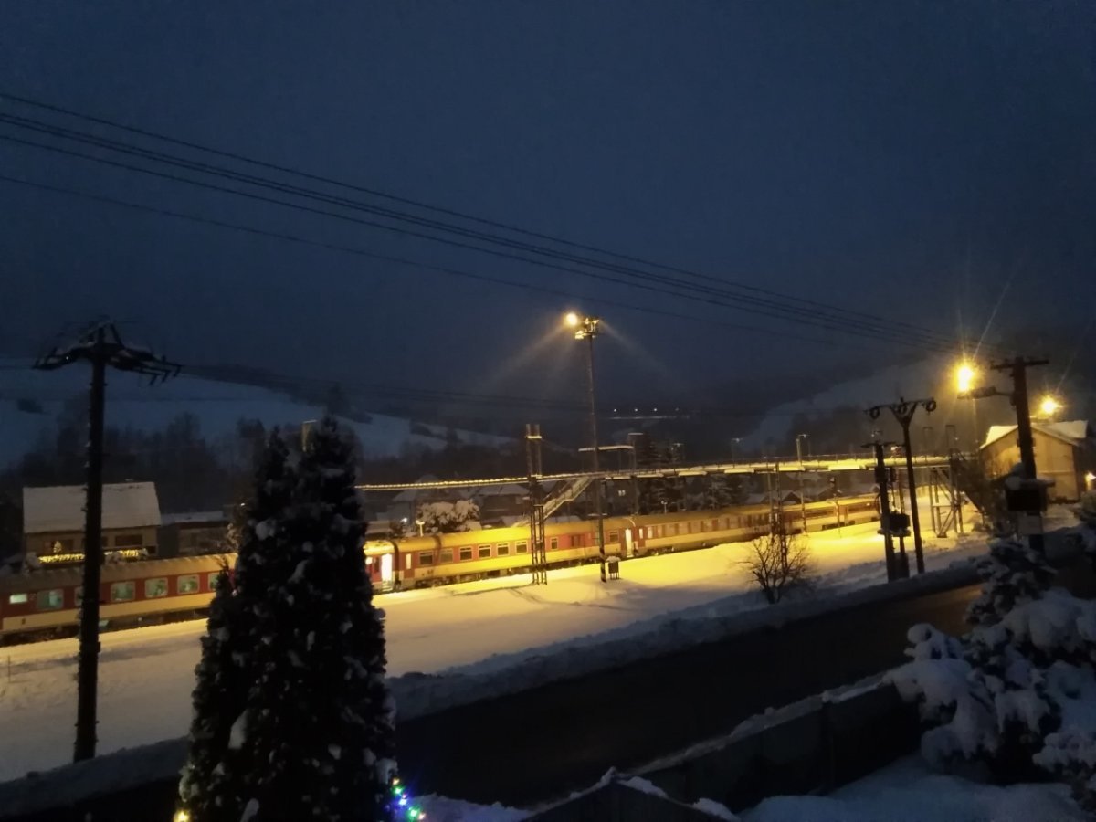 slabě sněží, -0.7°C