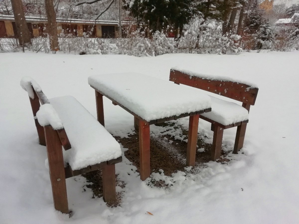 Ráno ještě slabě sněžilo, mírný SZ vítr.