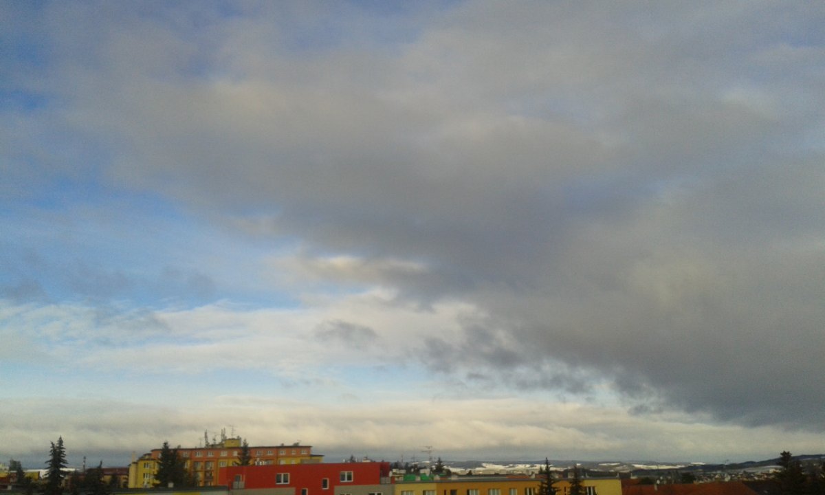 Přes noc připadlo trochu mokrého sněhu cca 2-3cm ale teplota se udržela celou noc slaboučce nad 0 takže sníh zároveň i odtával aktuálně převažuje většinou skoro zataženo až oblačno a fouká většinou vánek až slabý občas mírný chladný vítr a ještě máme 28cm vysokou sněhovou pokrývku ale během dne poklesne vlhkost 99%