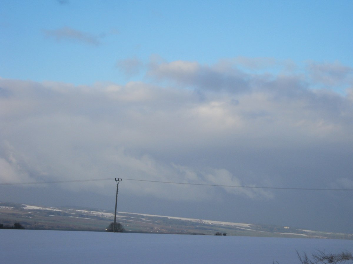 Zamračené, slabunke sneženie,veterno!