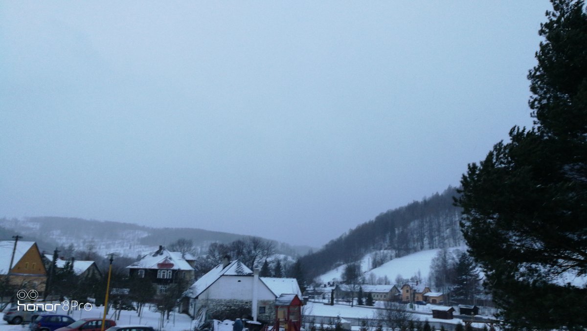 Zamračené, slabé sneženie.
