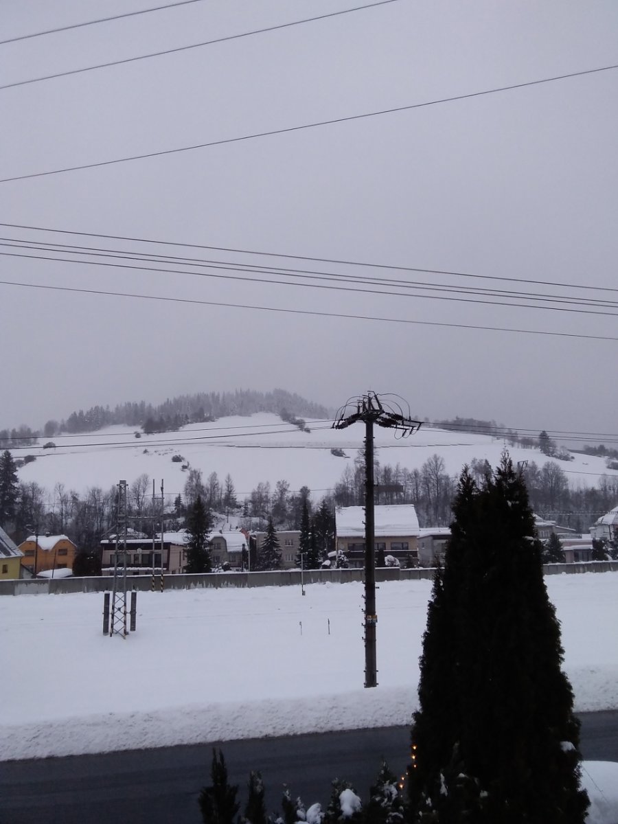Včera večer ještě sněžilo občas dokonce i intenzivněji a napadl 1cm sněhu postupně ale sněžení ustalo a oteplilo se takže nový sníh zmizel aktuálně převažuje většinou zataženo a droboučce mrholí a fouká většinou slabý až mírný chladný vítr a leží 15cm převážně vlhkého sněhu vlhkost 94%