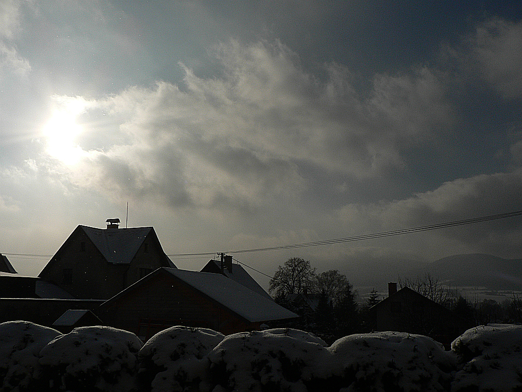 Ale už se slunko opět schovalo a začíná se zatahovat...Tak ještě jeden sluneční snímek...Podle varování ČHMÚ teď moc sluníčka nebude. Připravte hrabla a radlice, bude se odklízet sníh...