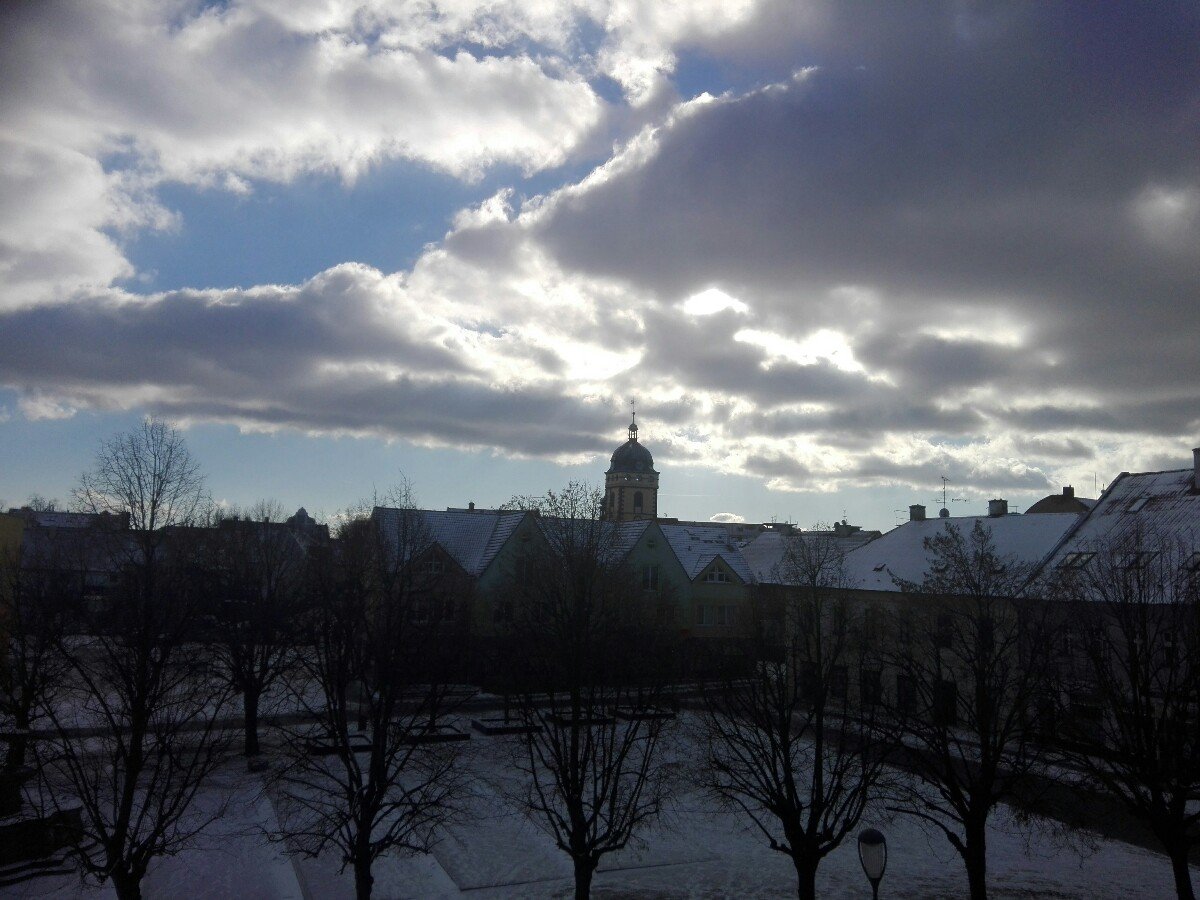 Sněhová přeháňka,slabý vítr,tlak 1017 hPa