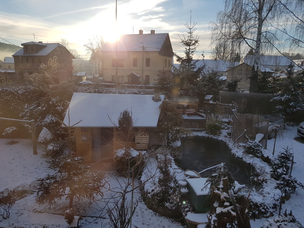 U nás již zcela bez sněhu, za to dnes ráno s parádní námrazou. Teplota ráno klesla k -9st.