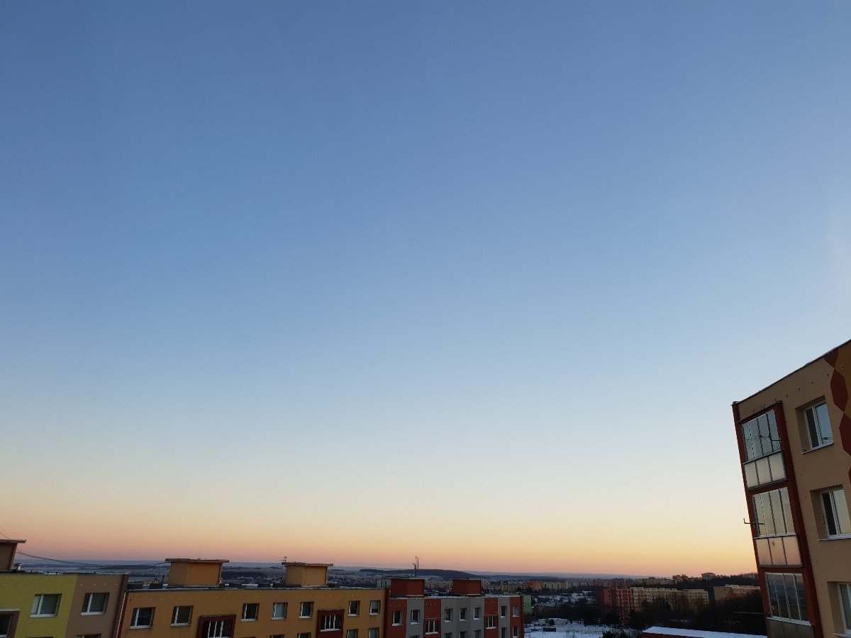 Je jasno a vane slabý vítr. Přidávám fotku ze západu slunce s procházky s rodinkou.