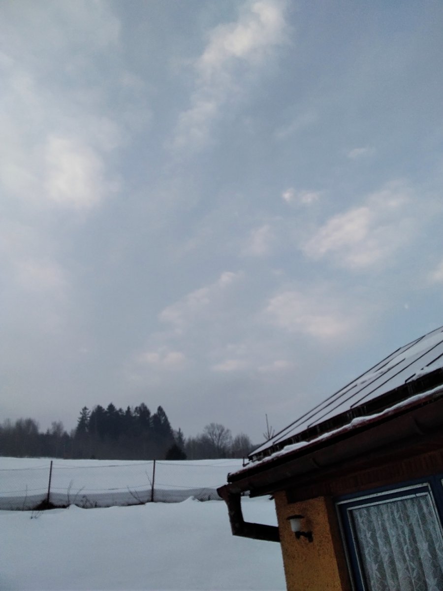 Zataženo, sněžení, jižní vítr 2-5km/h