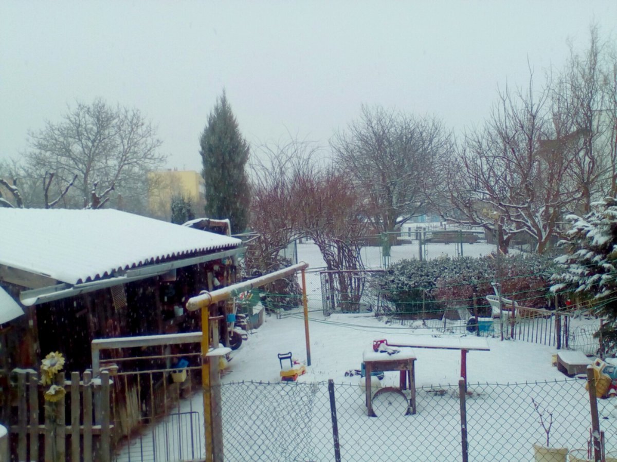 Kolem 7:00 začalo zase po dlouhé době trvale sněžit aktuálně převažuje většinou zataženo a jemně trvale slabě občas mírně sněží a fouká většinou vánek až slabý přechodně až mírný vítr a zatím napadlo 0.5cm prachového sněhu celková sněhová pokrývka dosahuje ještě 13cm směs prachového a zmrzlého sněhu ale během dne poroste a bílo je i na silnicích a místy se začínají tvořit sněhové jazyky a zatím je slabě pod 0 ale přes den se teplota dostane po delší době nad 0 vlhkost 87%