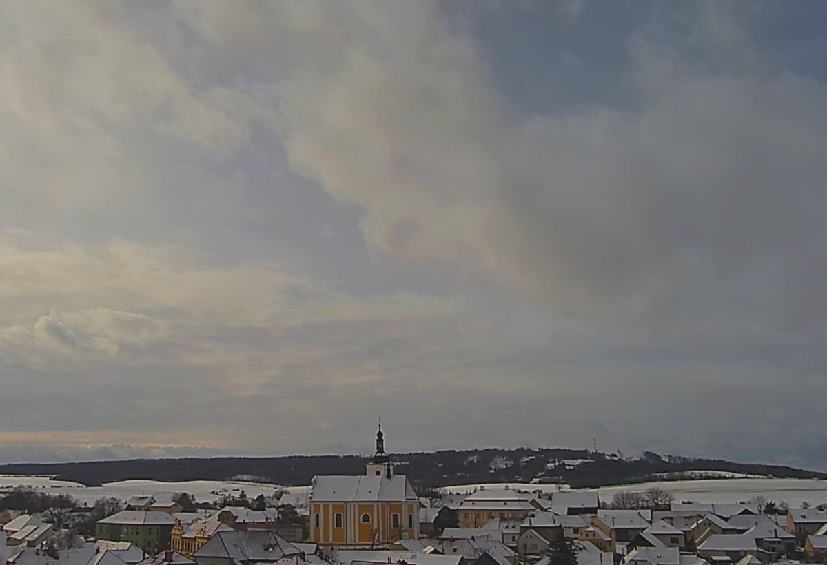 Oblačno, sníh začíná docela tát. Severozápadní vítr 7,2 km/h, tlak 998,3 hPa, vlhkost 69%.