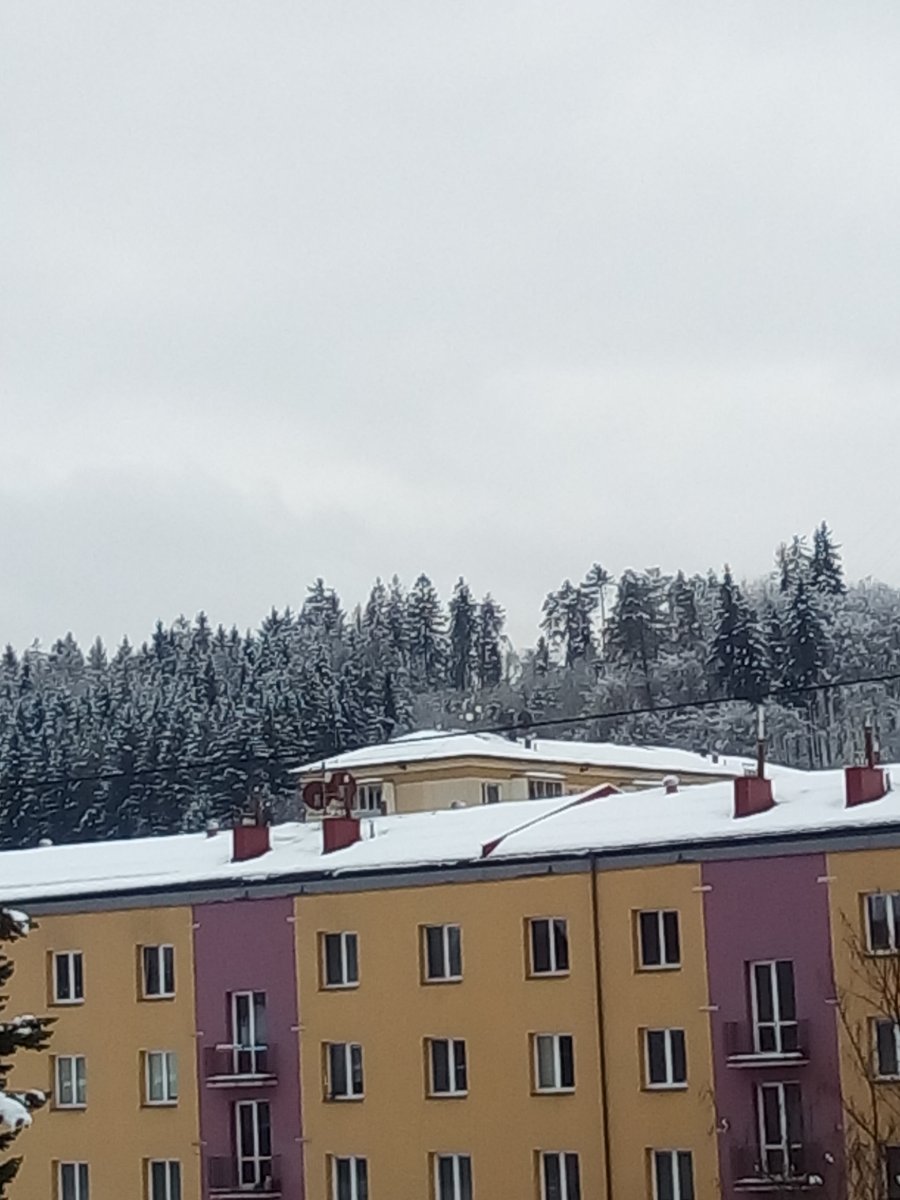 Občasné sněhové přeháňky,slabý vítr,tlak 1008 hPa