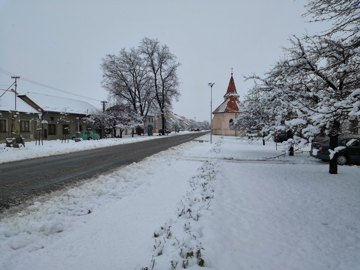Modrá obloha a otepluje se (ráno bylo -3,5 °C)