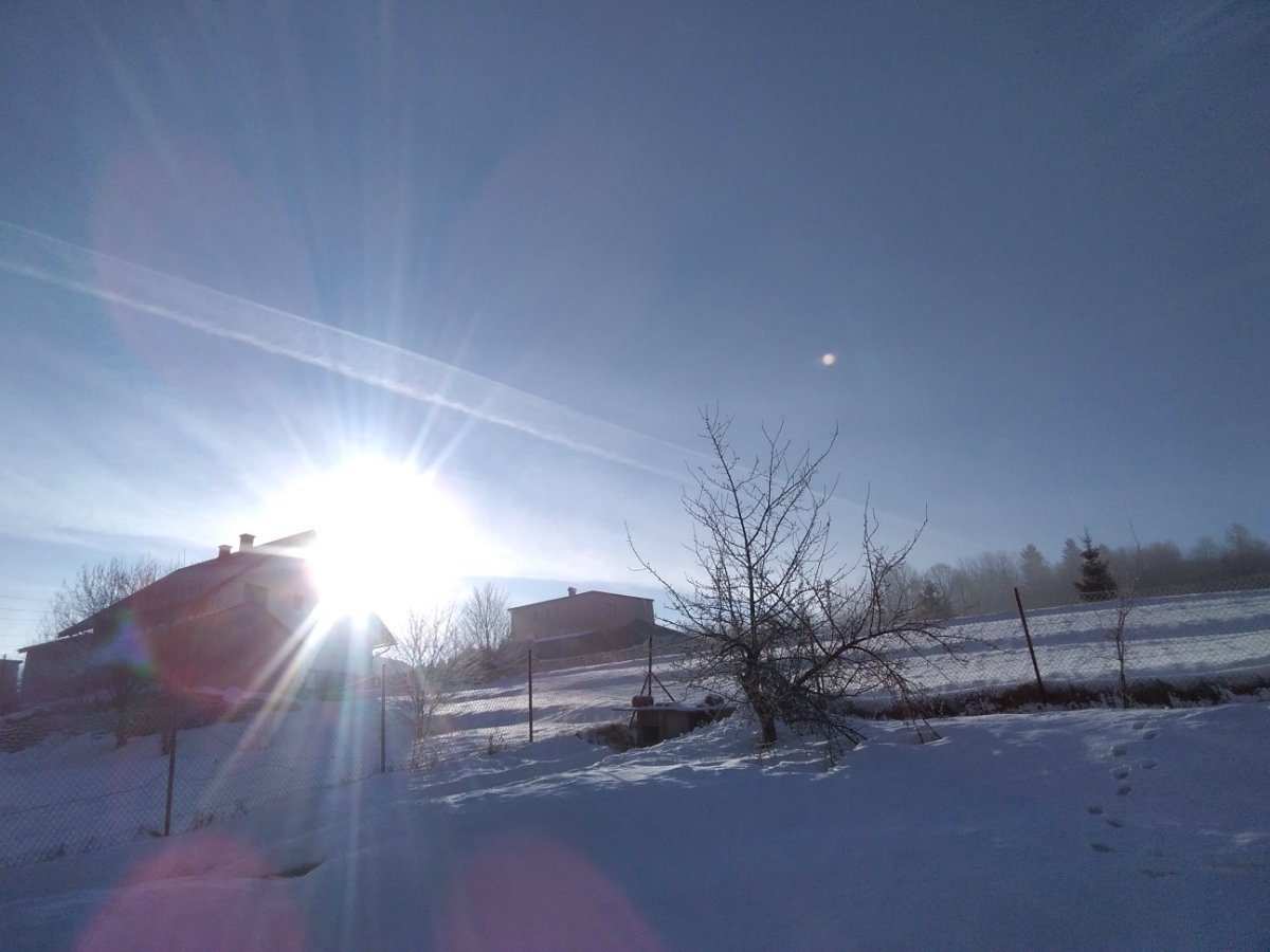 Na včerejším zprvu mlhavém, později zcela zataženém dopoledni sluníčko zamakalo k lehce mráčkovému až azurovému podvečeru. Mírně poodtál sníh na kterém od noci padající zmrzlé mlhy tvoří