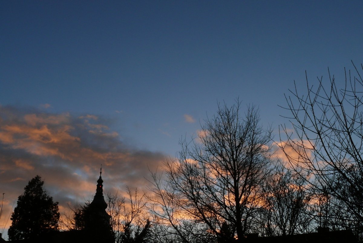 Zataženo,, občas padají drobné sněhové krupky, mírný vítr