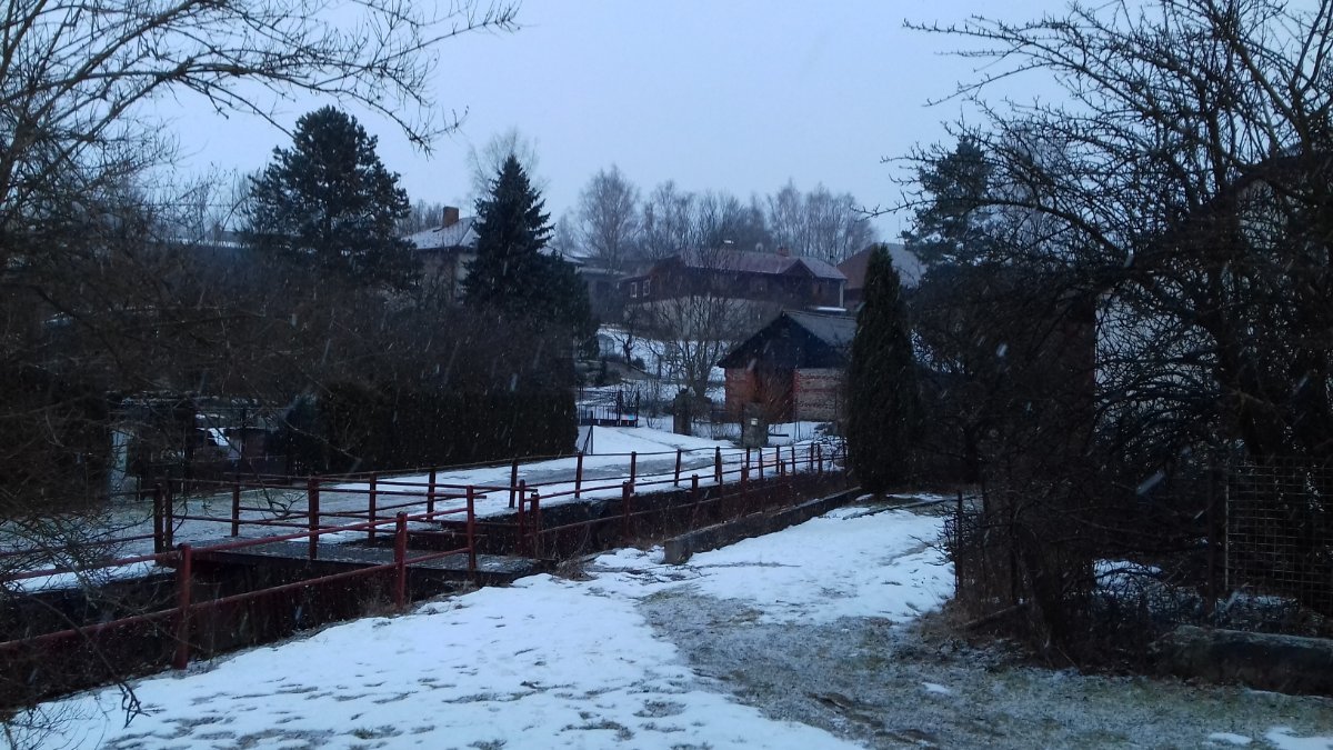 Po hodně větrné noci, ráno poprašek na namrzlých chodnících a silnicích, dopoledne připadaly 3 cm nového sněhu z šedivė beztvaré oblohy, nyní občas jukne sluníčko do odpolední oblevy.. středně silný nárazový SZ vítr...