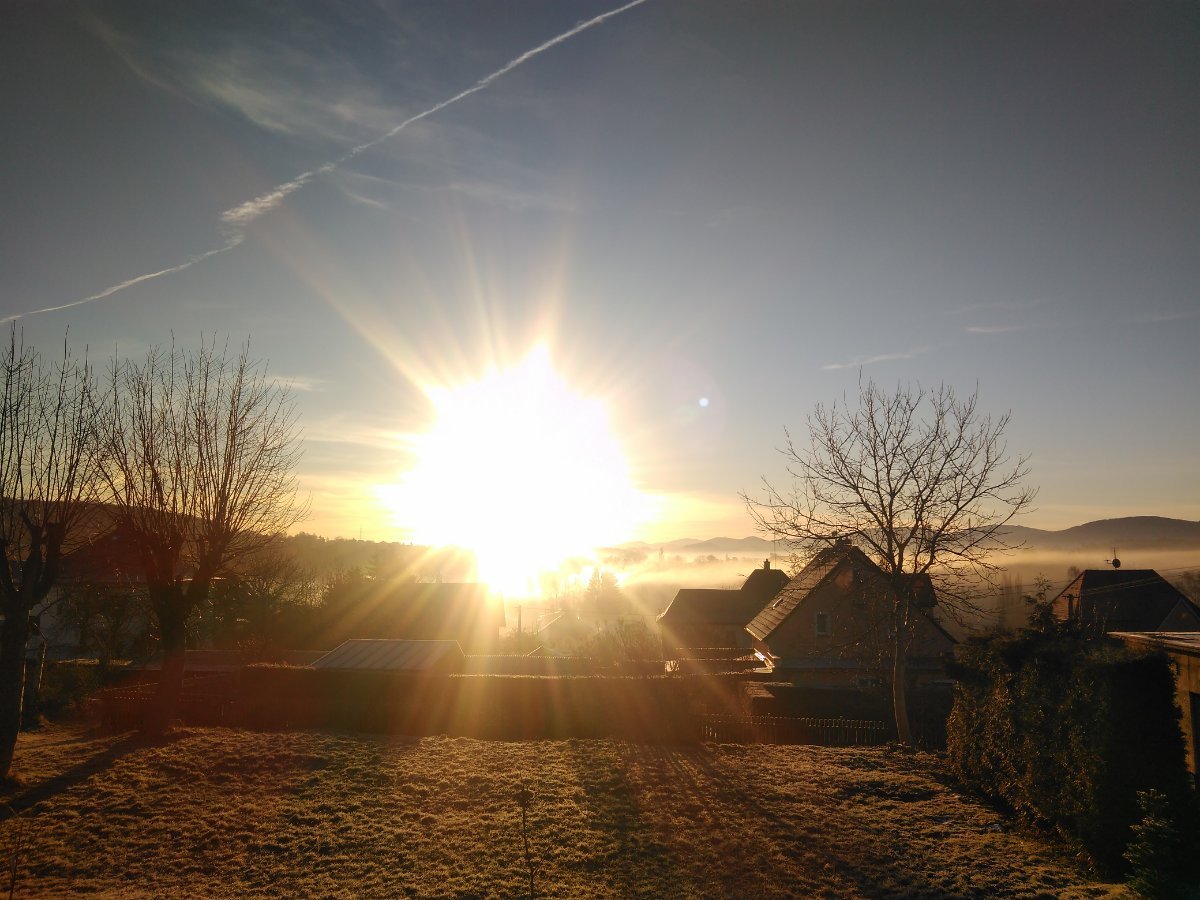 Máme hustou mlhu a bezvětří. Včerejší max teplota byla 8,3 st.