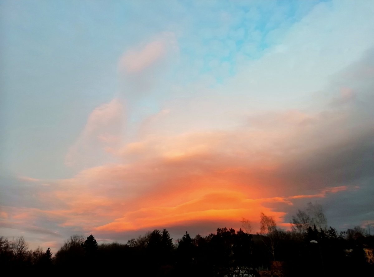 V noci ještě zcela jasno, pozvolné přibývání oblačnosti až do současného zatažena, zatím beze srážek, občasný nárazový SZ vítr podvečer utichá...