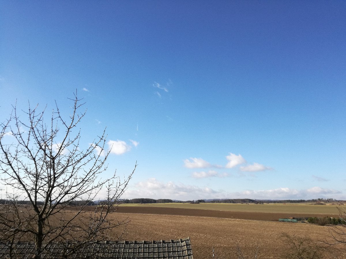 Severovýchodní slabý vítr, tlak 1036 hPa a vlhkost 64 %.