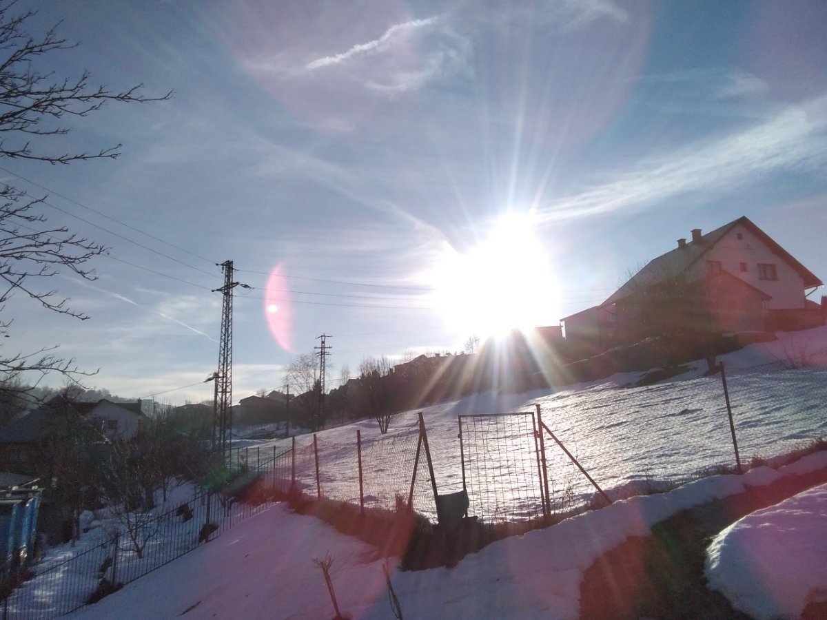 Od včerejšího odpoledne trvající skoro jasno, ranní mrazík, bezvětří, po obloze spíše než oblačnost rozpadající se kondenz z letadel...