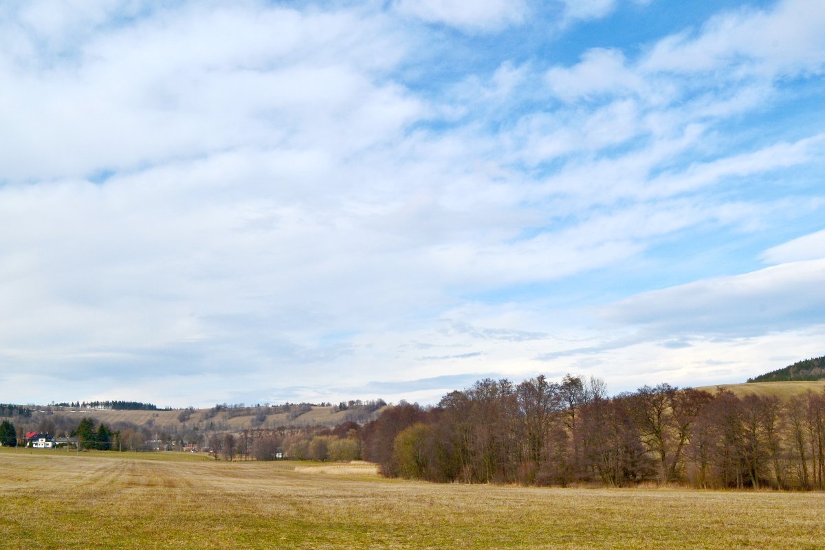 Polojasná až oblačná obloha, slabý vítr