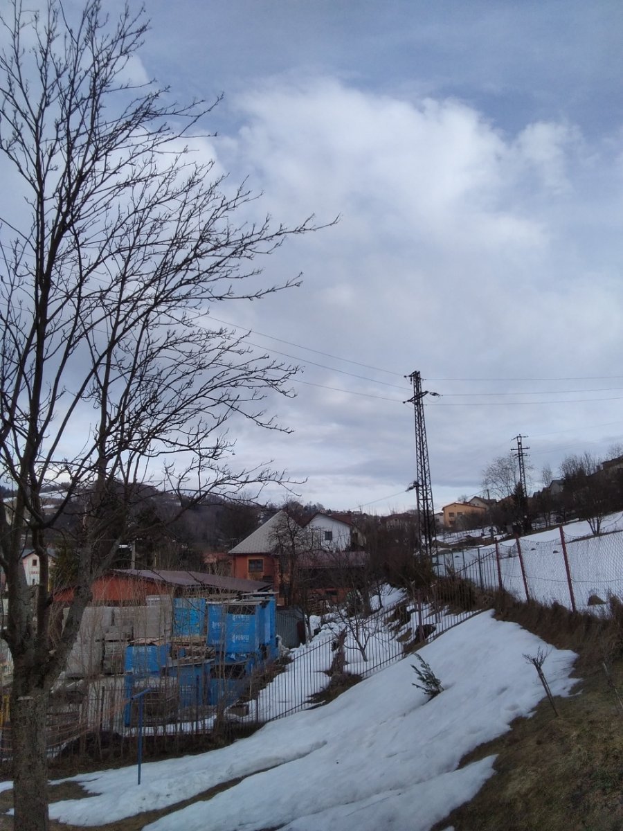 Dnes převažovalo většinou polojasno až oblačno ale kolem 9:30 bylo na chvílí místy až skoro jasno a zatímco dopoledne byly na nebi oblaky vysoké po poledni se přidaly i kupovité a zvedal se výrazně vítr a teplota byla rekordně vysoká dostala se až na 18 stupňů! Aktuálně převažuje většinou skoro zataženo až oblačno a velmi větrno a teplo fouká většinou mírný až čerstvý v nárazech až silný a místy i mírny vichr chůze je obtížná když se zrovna zvedne vítr a zbytky sněhu už jsou skoro pryč ale ještě se nějaké vyskytují a vypadá to jako kdyby se hnala nějaká bouřka vlhkost 44%