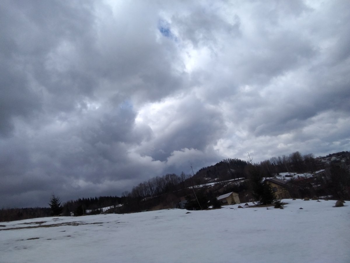 Od rána občasné sněžení, v přeháňkách se drží i poprašek sněhu.