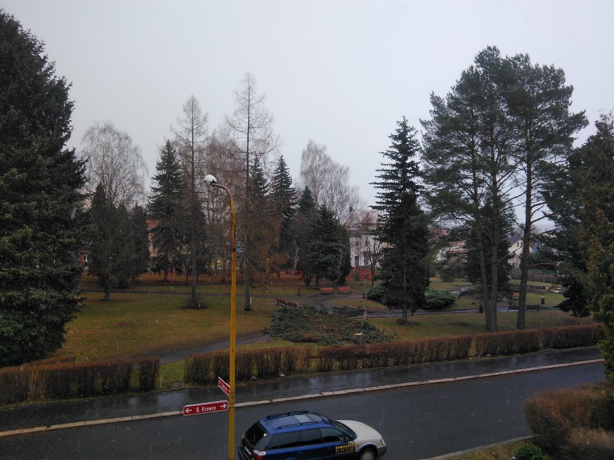 Zamračené, slabunke sneženie.