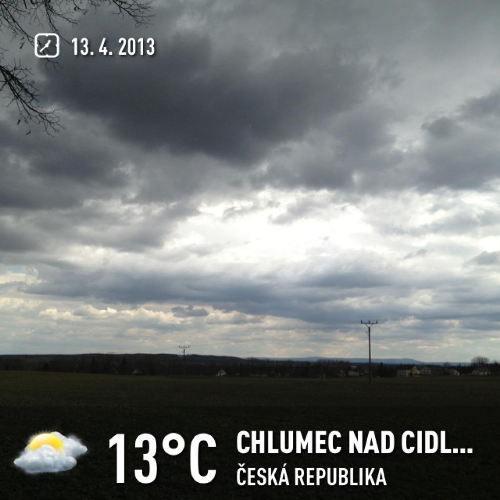 V Jicine asi tak 13:20 hod prisla silna prehanka se silnym vetrem. Tet je polojasno a mirny vitr.