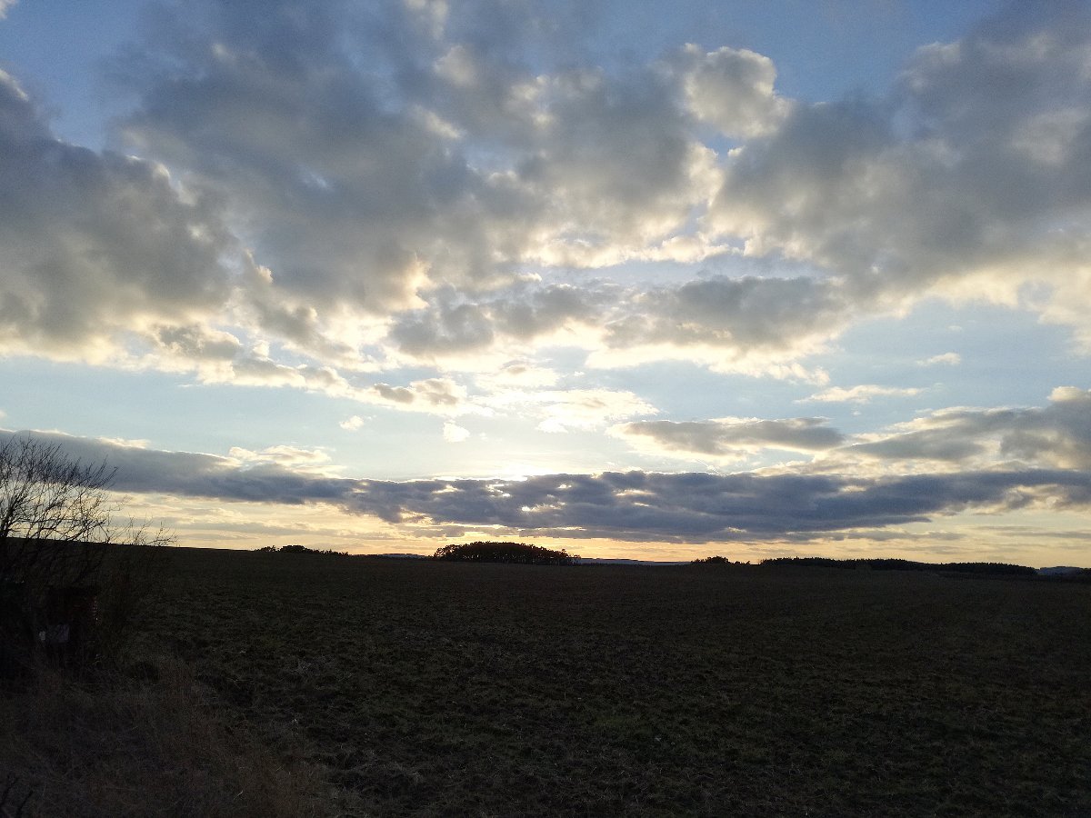2019 03 12 v 17:14:03 nad hlavou sluníčko na obzoru mraky - mírný studený vítr +6°